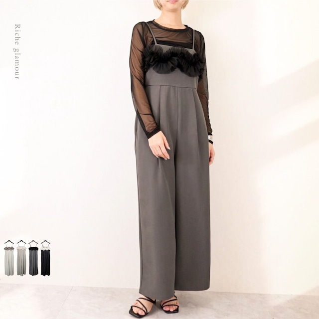 大人のリラックス感!オールインワン人気継続中!☆ ※リネンタッチ/ピンストライプ チュール ドッキング オールインワン☆ チュールがアクセントになって印象的な逸品!肩ひも調節可能です! ※定番のカラー展開で大人っぽい抜け感のある仕上がり!★ 【素材・成分】 (アイボリー、ライトベージュ、チャコールグレー)本体 ポリエステル97% ポリウレタン3% 別布 ポリエステル100% (ブラック)本体 ポリエステル94% ポリウレタン3% レーヨン3% 別布 ポリエステル100% 【生産地】 中国