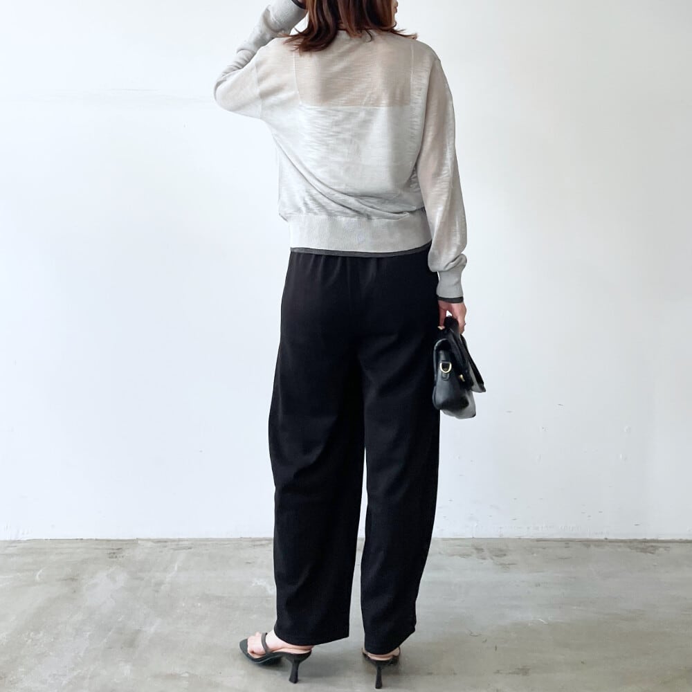 【スタイリング】1~3枚目 ミニ裏毛ライン入り立体カーブパンツ4~6枚目 バックリボンAラインワンピース7~9枚目 カットリブカップ付きホルターネックタンク ミックスツイードピンタックパンツ10~11枚目 シアサッカーフレアスカート
