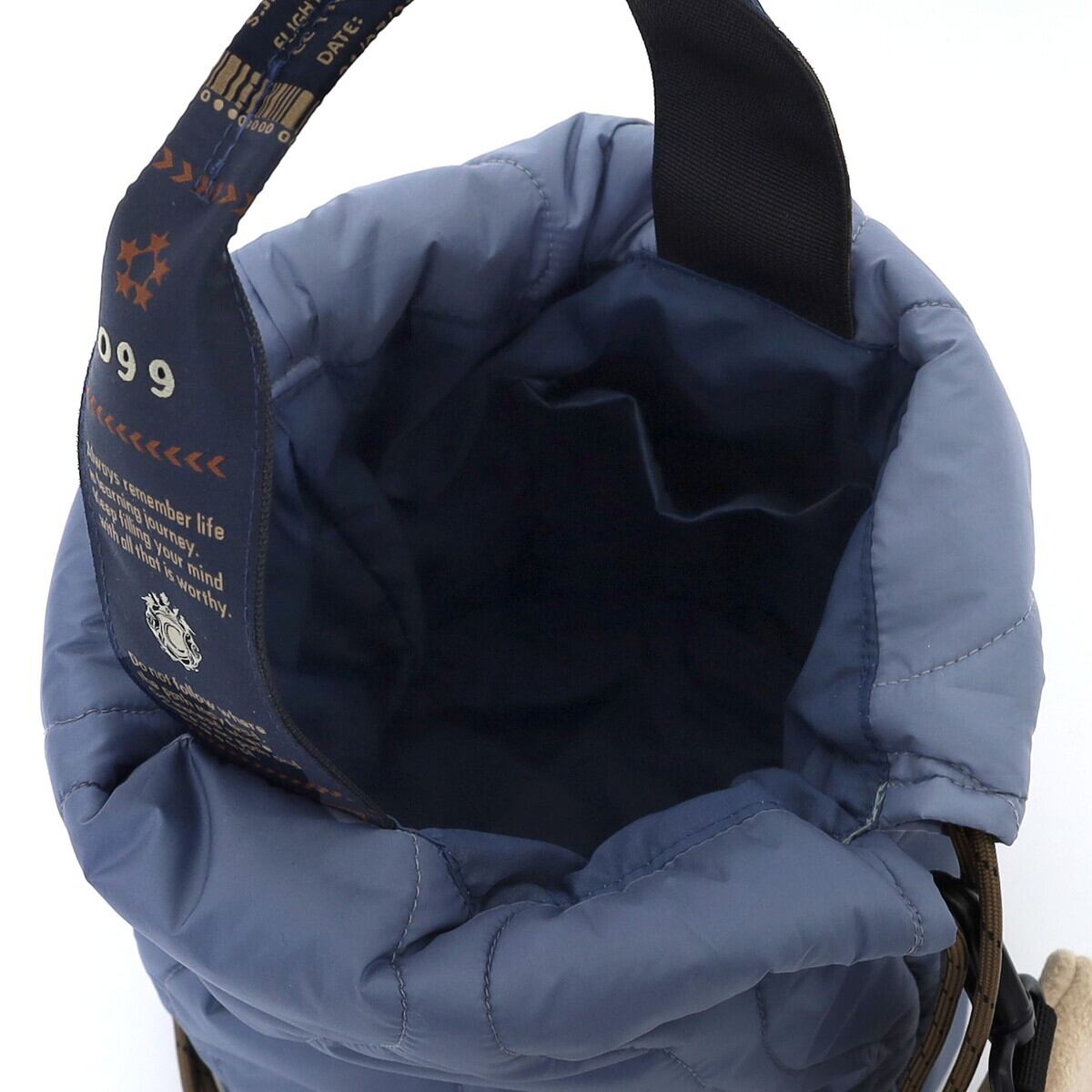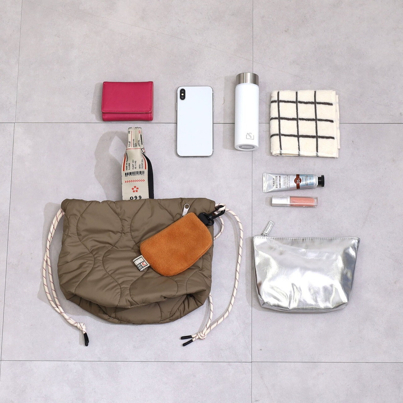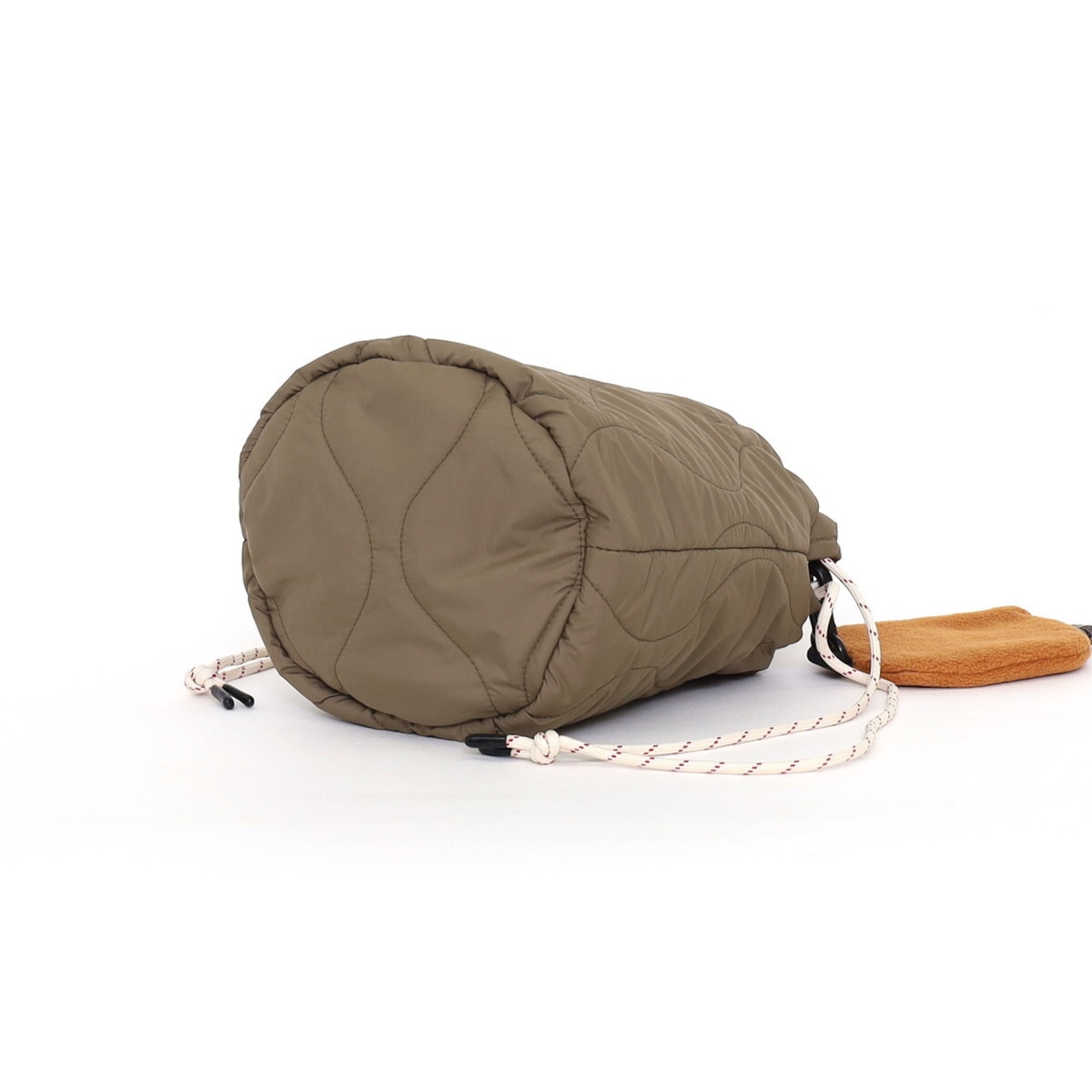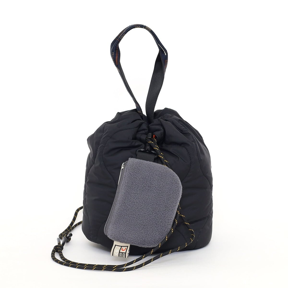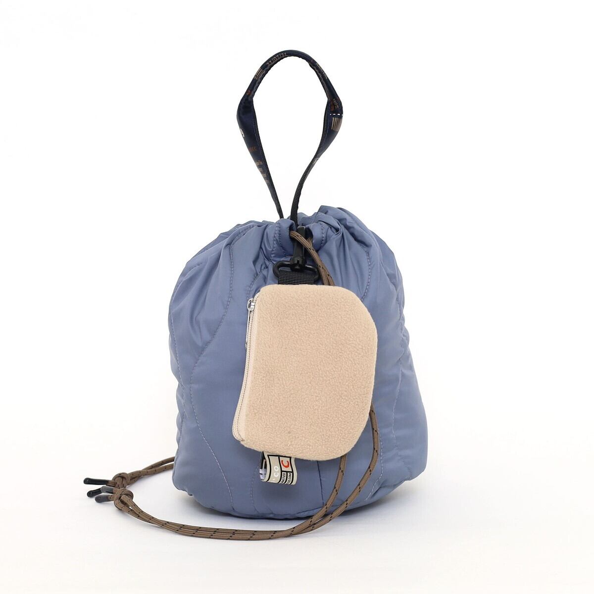 キルティングとフリース風素材のコンビがポイントの巾着型ワンショルダーバッグ。