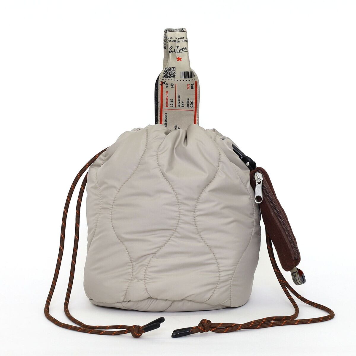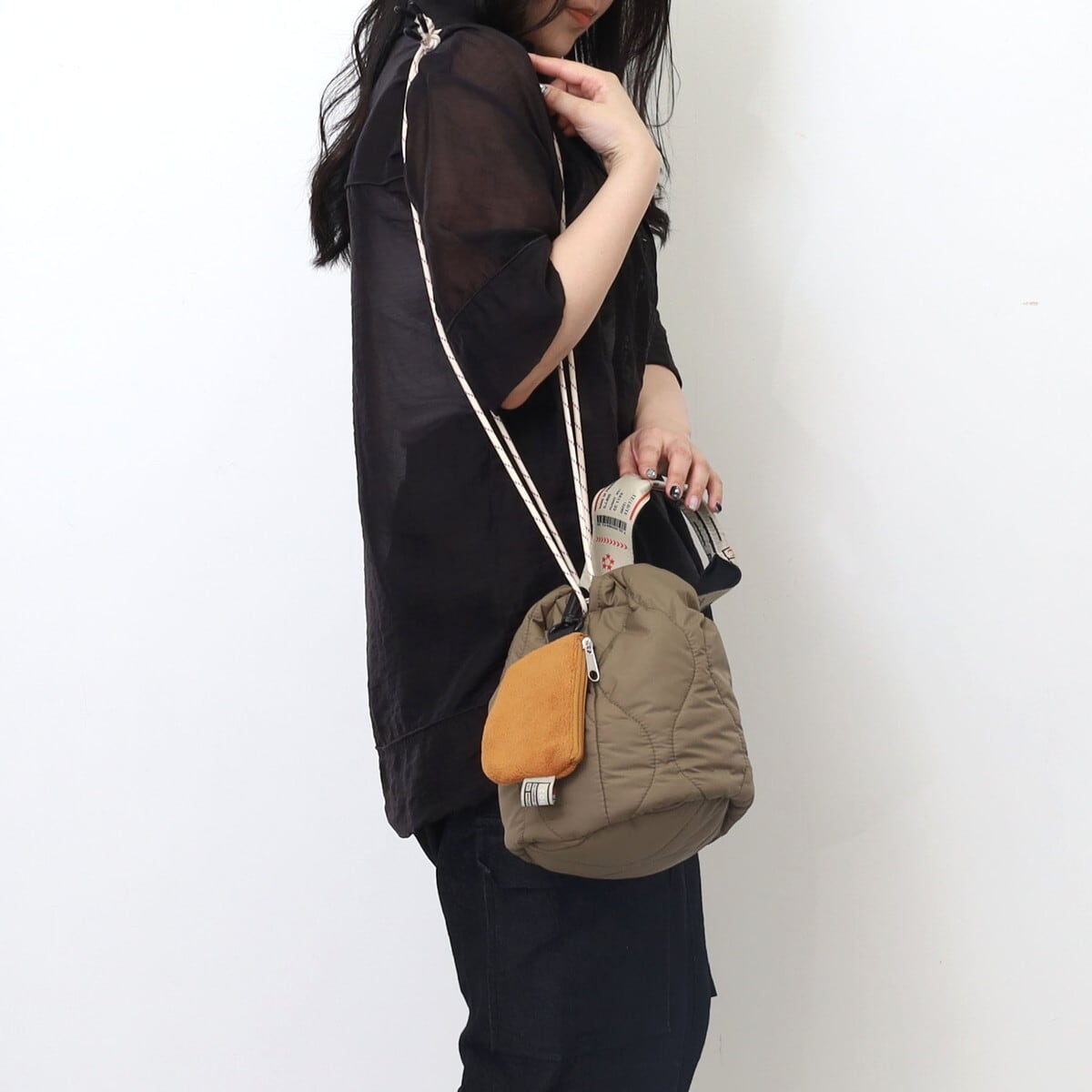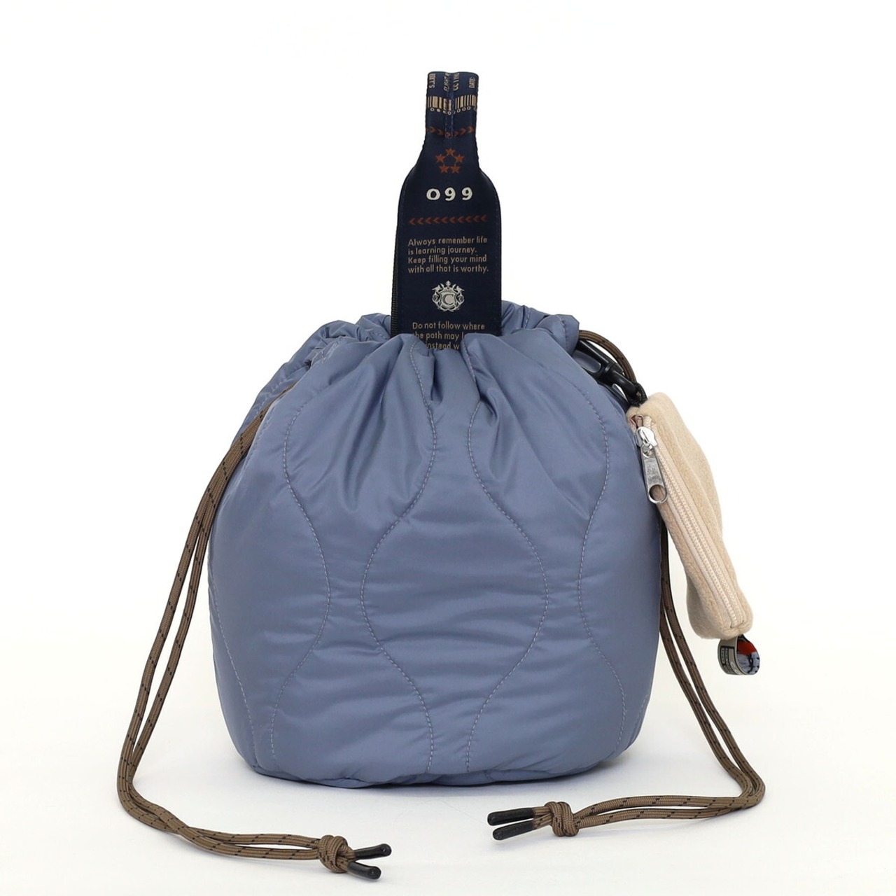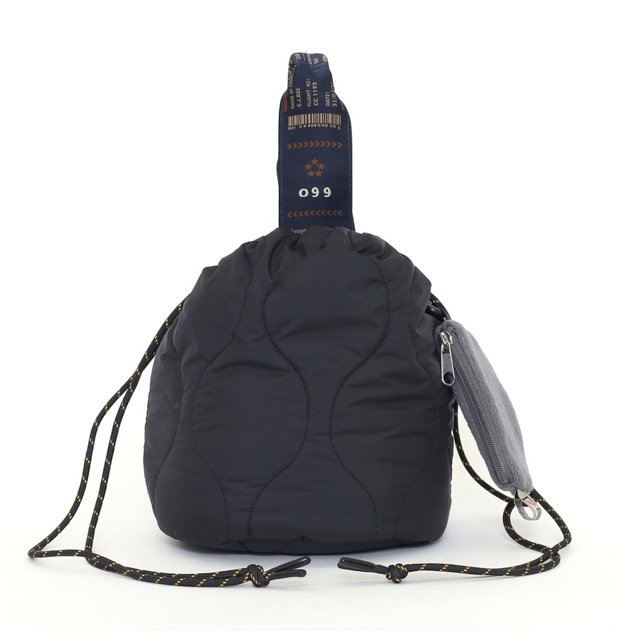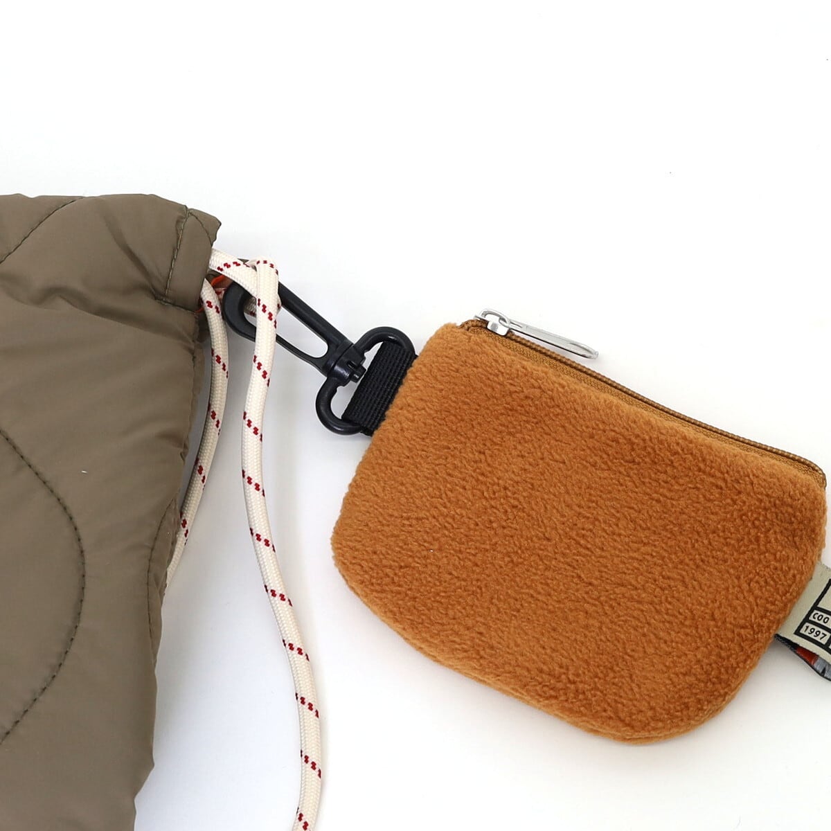キルティングとフリース風素材のコンビがポイントの巾着型ワンショルダーバッグ。