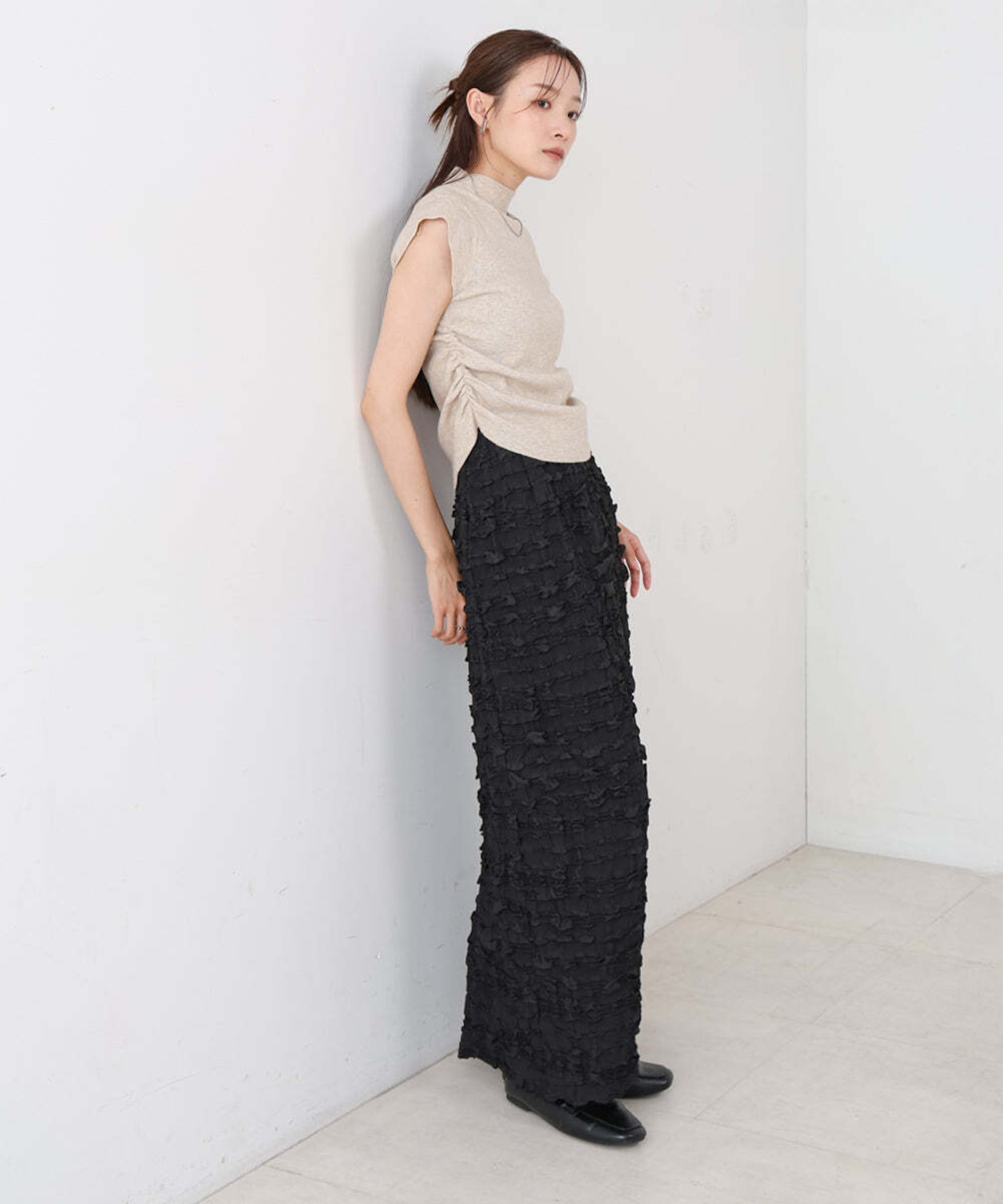 【コーディネートアイテム】・BLACK→6533022/BEIGE(サイドギャザープチハイネックトップス)