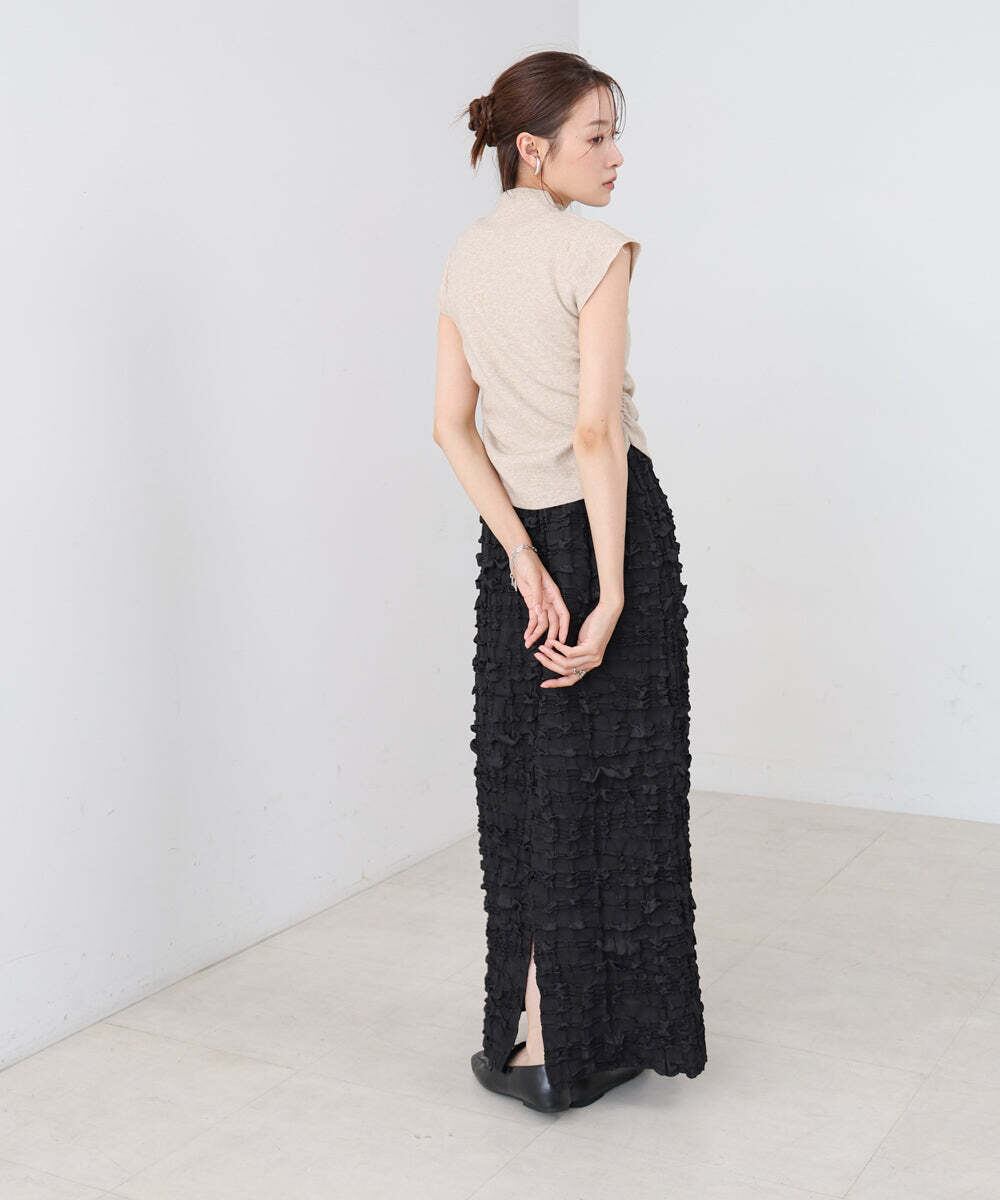 ■POINTポコポコ感を出すことでシンプルすぎず、タイトスカートにすることでガーリー過ぎずなカジュアルにもフェミニンにもなるデザインスカートです。ウエストはゴムになっているので履きやすく、着心地も抜群です。春にはシアー素材のカットソー、夏にはTシャツと、秋冬はニットなどと合わせたりできるので1年中使っていただけます。