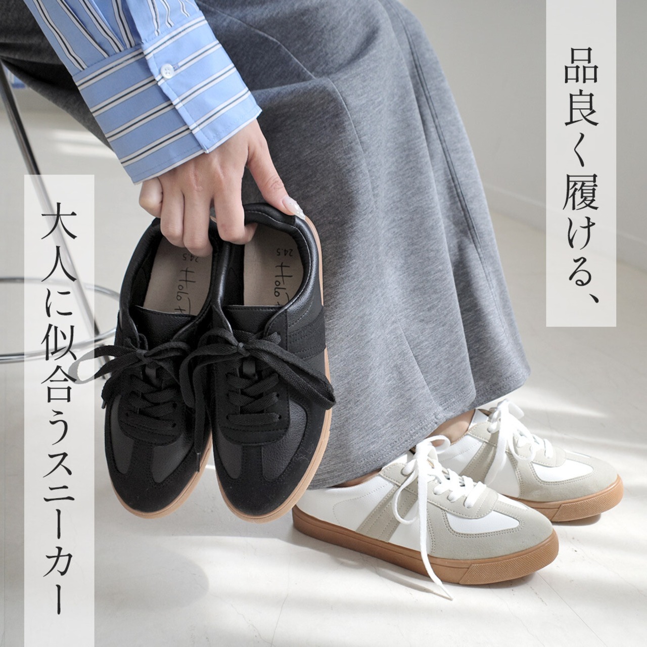 カジュアル派にもきれいめ派にもおすすめな、大人に似合うスニーカー。