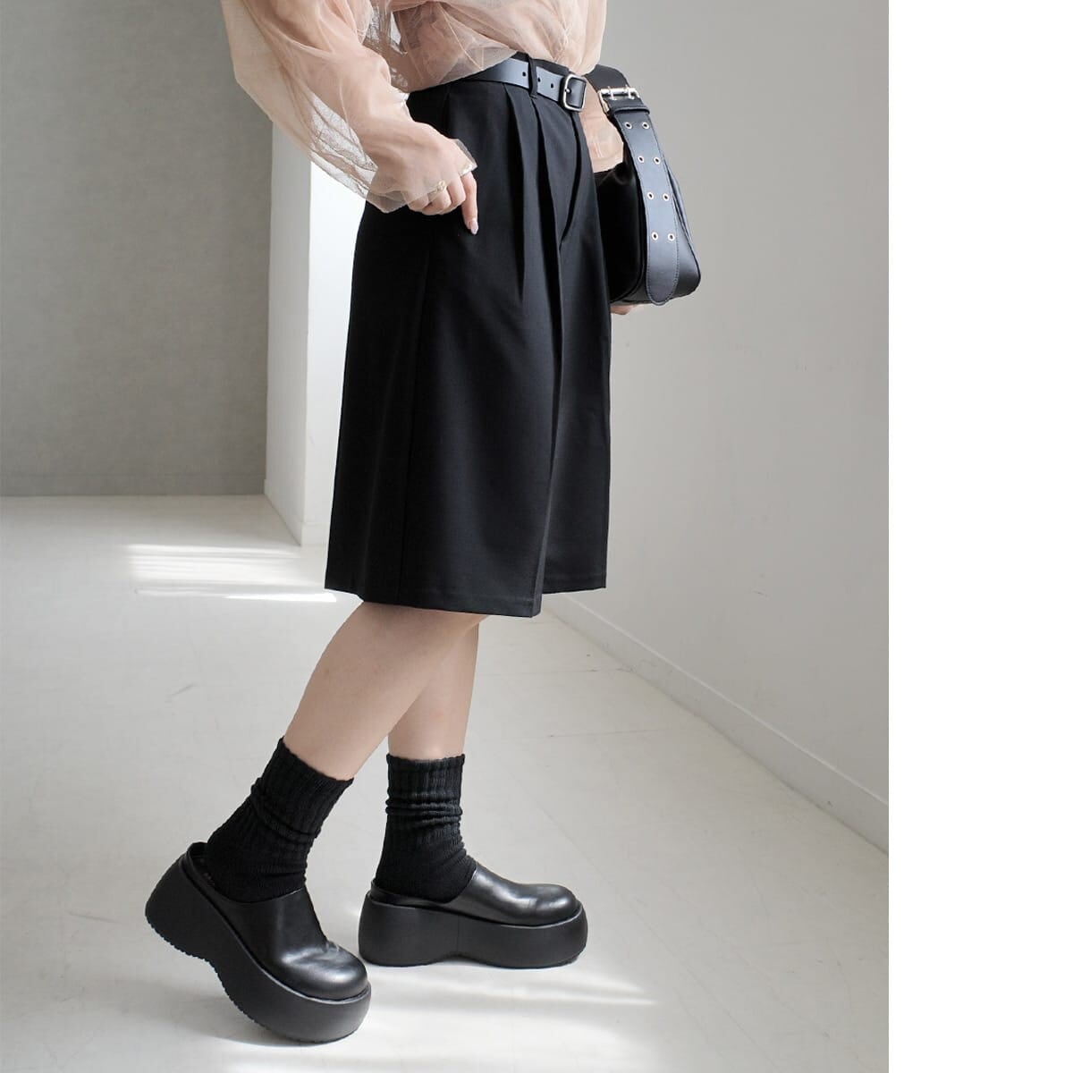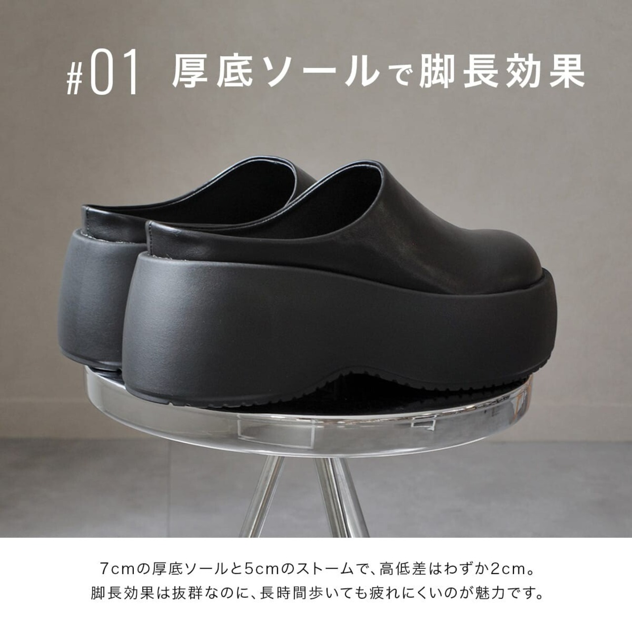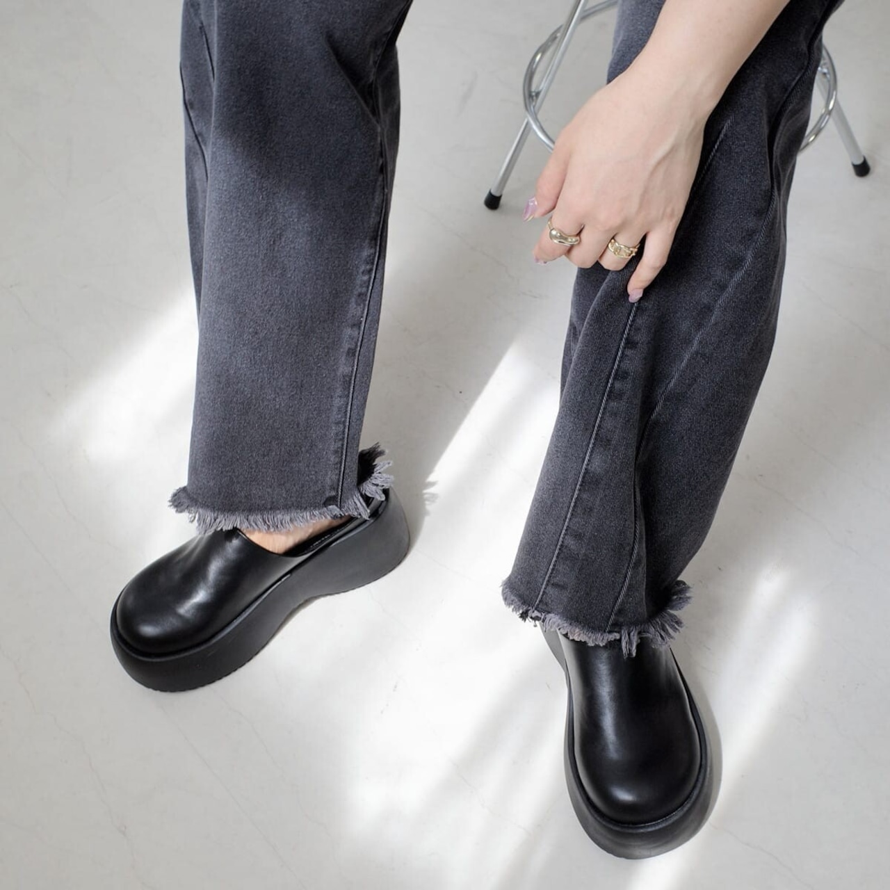 モード感あるオールブラックの厚底シルエットで、スタイリングを格上げしてくれます。