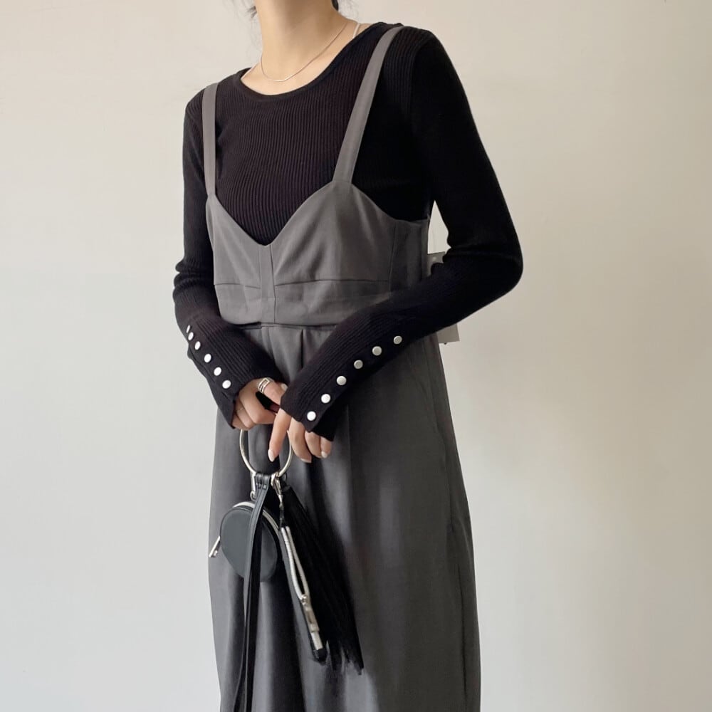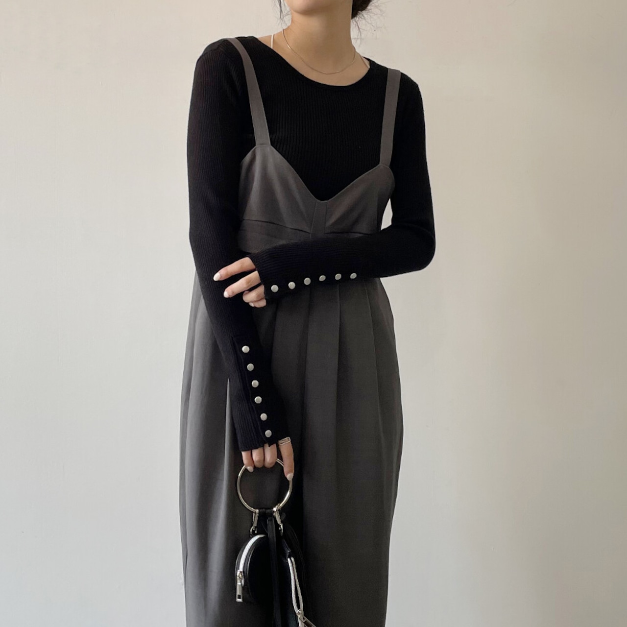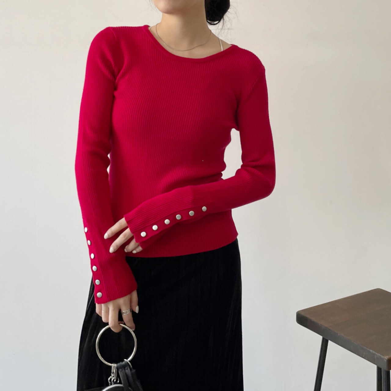 モデル身長:162cm メーカー品番:F1217クールクール/袖釦/ニットトップス/ボタン/リブ/長袖トップス