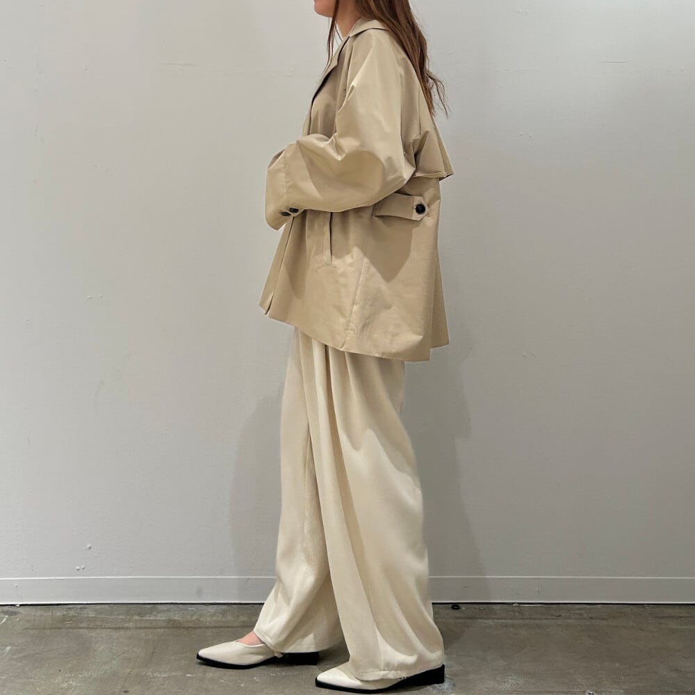 軽やかなナイロン素材を使用した、モダンな印象のトレンチコート。 程よくゆとりを持たせたシルエットで、インナーを選ばず長いシーズン着用できます。 トレンチらしいディテールを残しつつ、ナイロンならではの抜け感でデイリーに取り入れやすい一着に。きれいめにもカジュアルにも馴染み、通勤から休日スタイルまで幅広く活躍します。