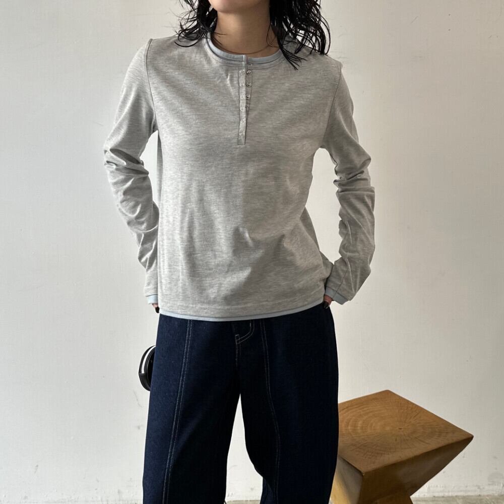 モデル身長:162cm メーカー品番:F2430TR天竺/レイヤード/配色トップス/ヘンリーネック/カットトップス